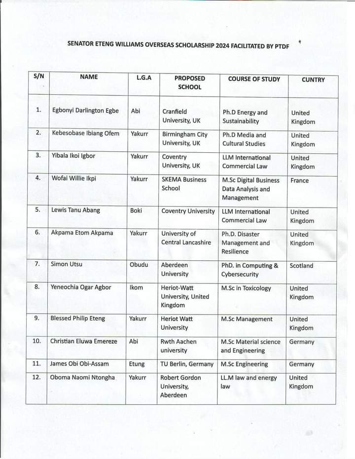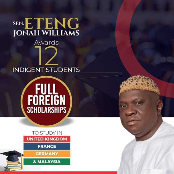 Senator Eteng Jonah Williams, representing Cross River Central, has achieved another remarkable feat by securing full foreign scholarships for 12 students from his constituency to pursue postgraduate studies at prestigious universities in the UK, Germany, France, and Malaysia.